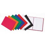Copertine in polipropilene semirigido trasparente da 0,5 mm. Buste interne fisse in polipropilene cristallo liscio alta trasparenza. Formato 24x32 cm. 5 colori assortiti: rosso, verde, azzurro, turchese, trasparente.