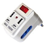 ADATTATORE 10A - 2 PRESE 10A E 2 PRESE USB - CON INTERRUTTORE LED - CORRENTE USCITA (MAX): 2.1A - POTENZA (MAX): 1500W